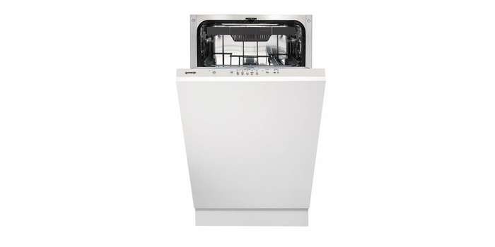 На первом месте рейтинга стоит еще одна встраиваемая узкая посудомойка Gorenje GV561D10, которая выделяется самой большой вместимостью – 11 комплектов посуды. У нее предусмотрены 2 основные корзины со складными держателями для тарелок и откидными полочками для чашек, а также третья узкая корзинка, в которой можно компактно разместить столовые приборы. В камере установлено три разбрызгивателя с 5-ю уровнями подачи воды, что обеспечивает отличное качество мытья во всех уголках корзин.