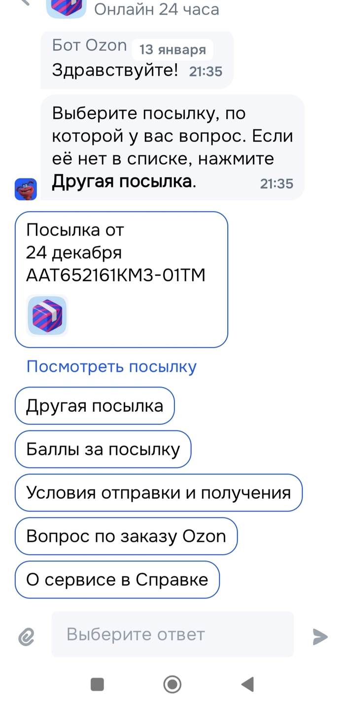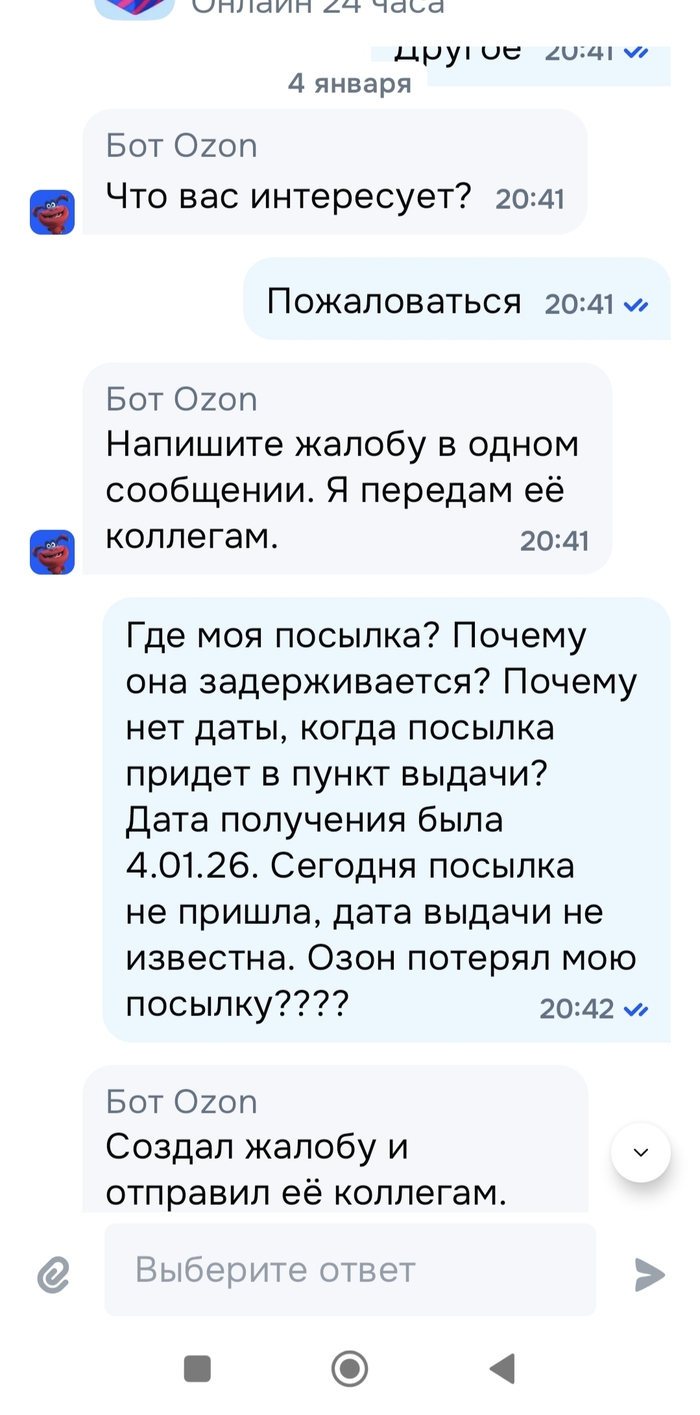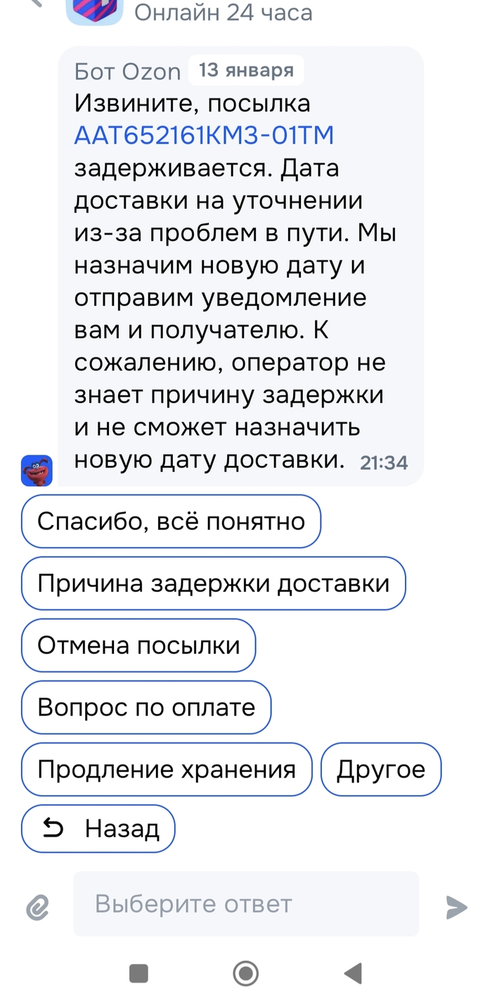 На третий день статус посылки изменился на "где-то там, может быть, мы вам потом скажем, позже, когда-нибудь". Типа "ваш звонок очень важен для нас, ждите..." Не ждал я от Озона такой подставы, покупался у них с открытия постоянно, без вопросов.