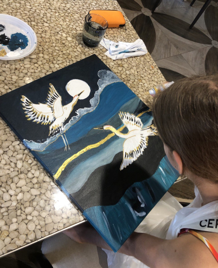 [моё] Авторская живопись Картина Живопись Холст Акрил Аист Поталь Длиннопост