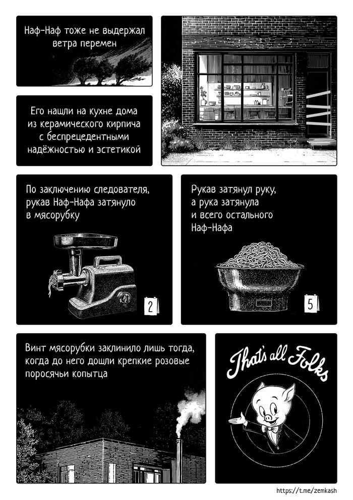 — Котлеты из человечины? — невозмутимо чавкая, спросила полячка.