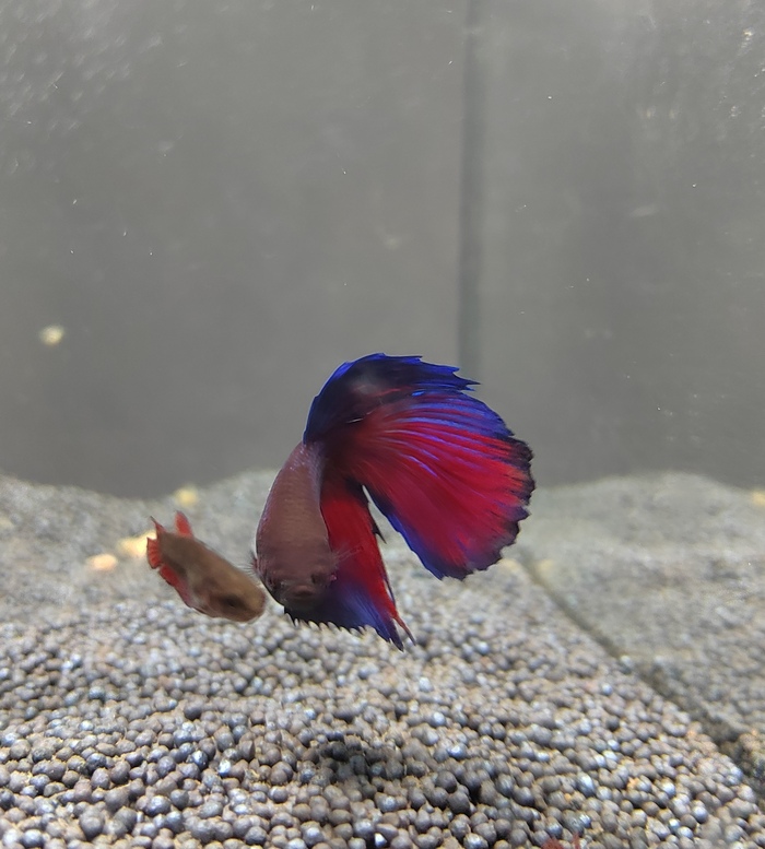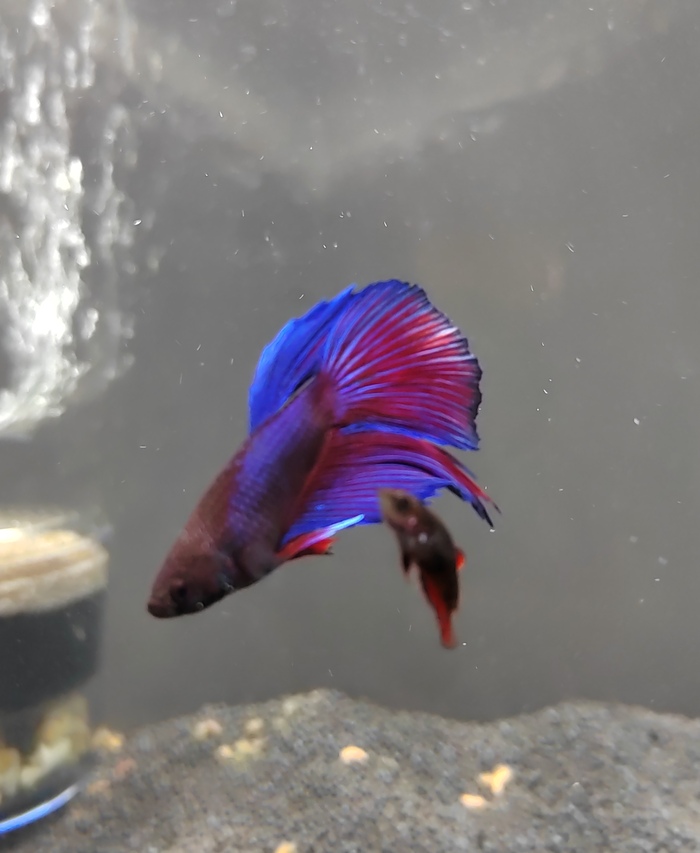Пара петушков дала потомство. Вот такой красавец получился. Всего было 12, выжили 4: два самца и две самки. Опыта в разведении пока нет, само собой получилось. Буду этому красавцу вскоре приобретать самочку)
