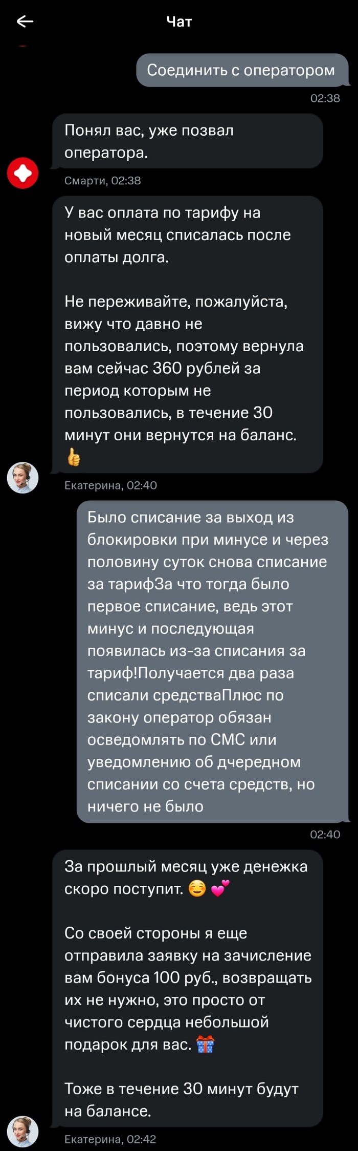 Побумнел с оператором и за неиспользованный когда-то пол года назад тариф, деньги за который магическим образом снялись, почти так же вернулись. Но через бубнёж с поддержкой.