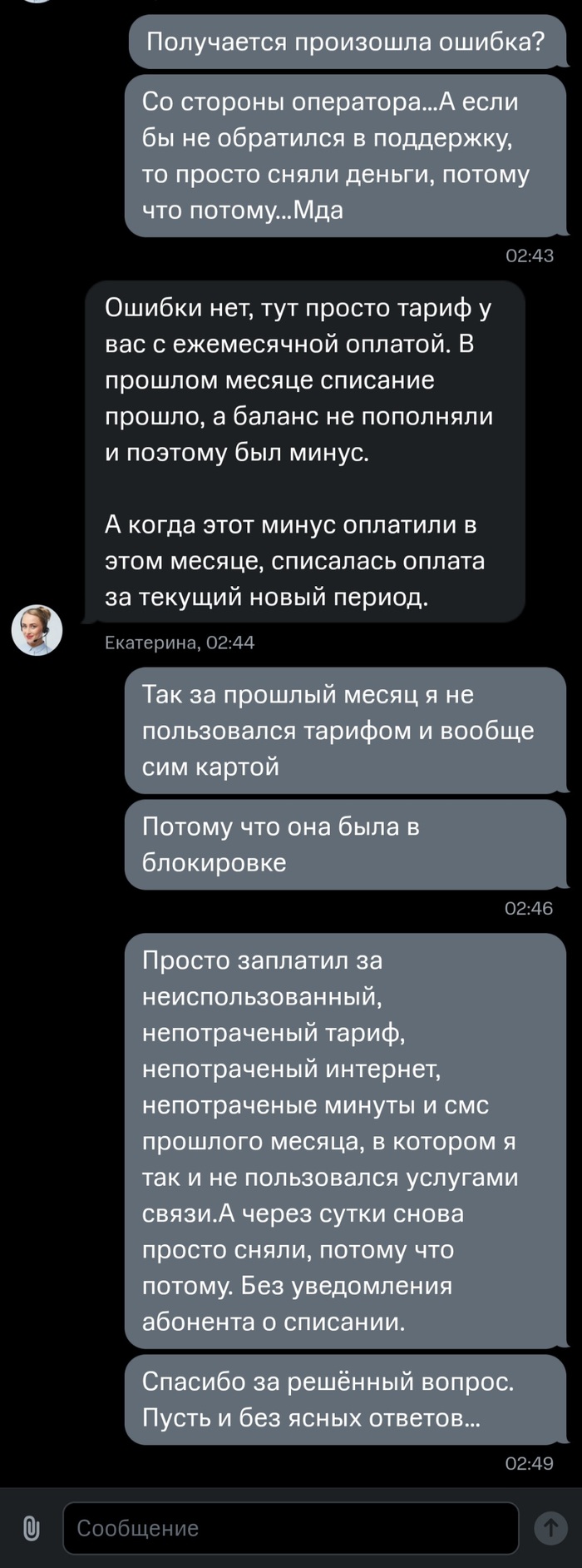 Положил на счёт сумму для выхода из блокировки и следовательно для оплаты того самого тарифа, который когда-то давно год назад неудачно оплатился в минус счёта и так и не был использован.