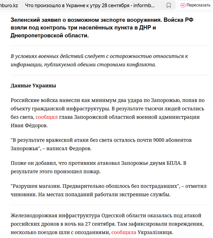 Он также предупредил, что из-за проблем с электроэнергией возможны перебои в оповещении о ракетной опасности или атаках дронов.