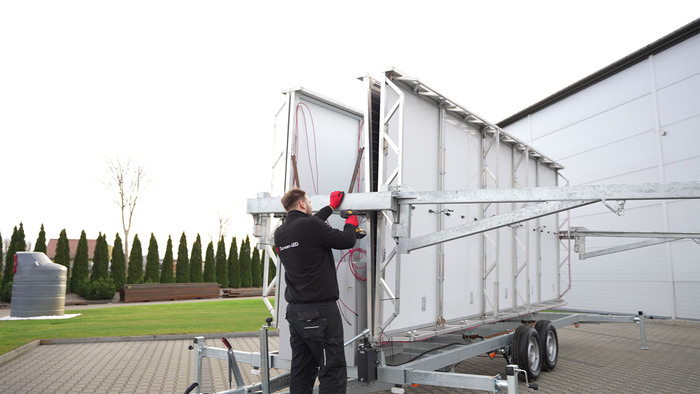 Представьте: дизеля нет, а вы на стройке, в поле или даже в зоне стихийного бедствия, а энергия нужна прямо сейчас. Для этого инженеры MOVE it Power придумали солнечный прицеп — мобильную фотоэлектрическую станцию mobile PV system, которая раскладывается всего за 10 минут и начинает вырабатывать электричество от солнца.