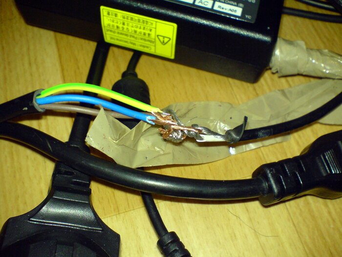 Женщина починила блок питания для ноутбука, который погрызла собака.