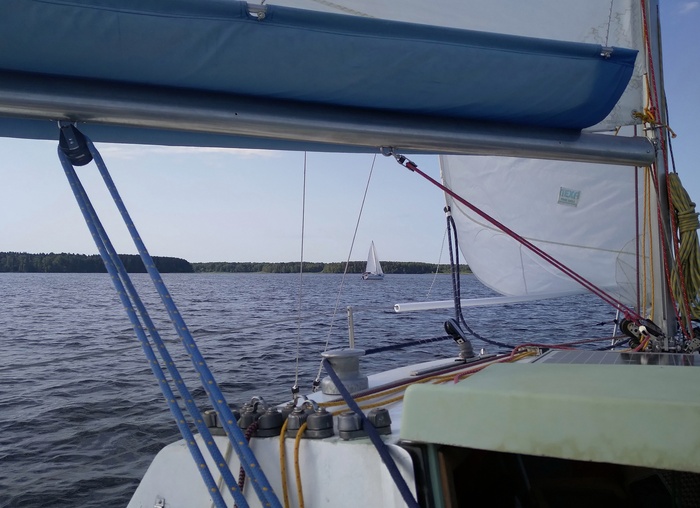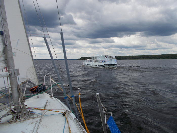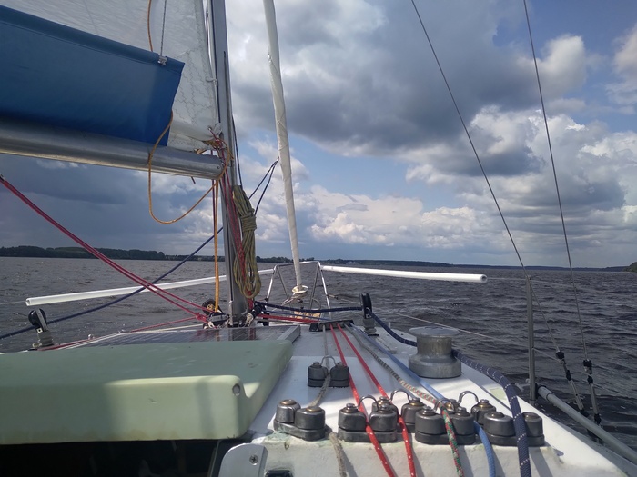 Стоило заскочить в яхты, как начинается ливень. Сергей второпях забыл вытащить пробки из шпигатов и «Зефиру» налило изрядно воды в кокпит. Под шум дождя обсуждаем дальнейшие планы. Изначально планировалась ночевка в Твери, а с утра посещение музея Калининского фронта в Эммаусе, но завтра понедельник, и музей закрыт.