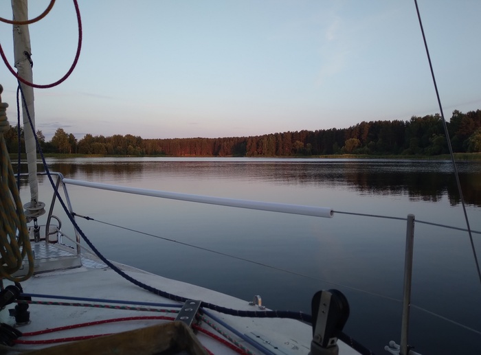 Опять медленно проплывают пригороды Твери, но настроение приподнятое - цель похода достигнута, да и прогулка по Твери оставила самые приятные впечатления. Держим курс на речку Орша, очень рекомендовали местные яхтсмены, и действительно красивая глубокая речка. Встаем к монастырскому причалу с красивой часовенкой, спросив на то разрешения. На причале монашки в окружении пятка кошек ловят рыбу. Тихий вечер, закат, словом идиллия. Началось паломничество местных кошек на яхты, видимо им в диковинку.