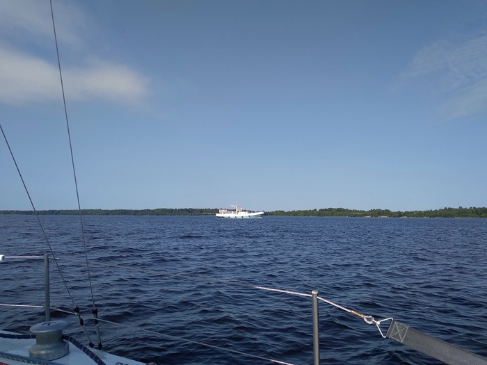 Животные получают по куску завалявшейся колбасы. От жадности при заходе на борт один кошак не рассчитал расстояние и искупался, впрочем, это его не остановило, видимо колбаса вкуснее рыбы. Отужинав, и обсудив увиденное за день, завалились спать. Движуха на причале продолжалась часов до 23-х, несмотря на огромных злющих комаров, популярное место, однако.