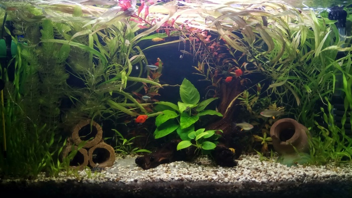 Первый наш аквариум был 25 литров, но мы очень быстро поняли , что этого мало.