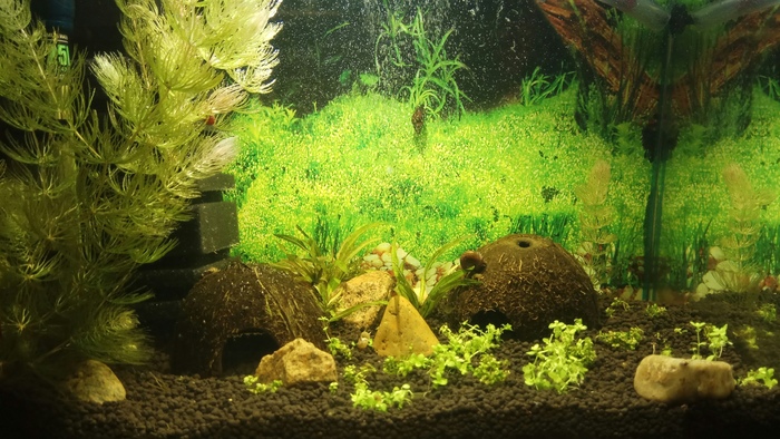 И вот в один день мы купили креветосов вишня, блу и тд, штук - 7. И в течении ещё месяца был сделан вывод - не смотря на обильное количество растюх - потомство креветок нам не видать.
