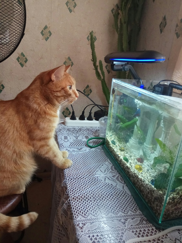 не нарушая традиций: в первый день появления акваса- наш кот очень хотел суши или уху
