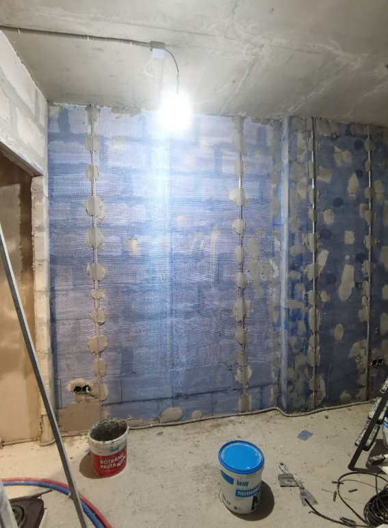 С новомодными штукатурками тоже так себе. Я и так-то первый раз штукатурил, а тут еще жена модным микроцементом помогла. Главное, еще потом сверху обработать лаком, чтоб все не продолжало сыпаться.