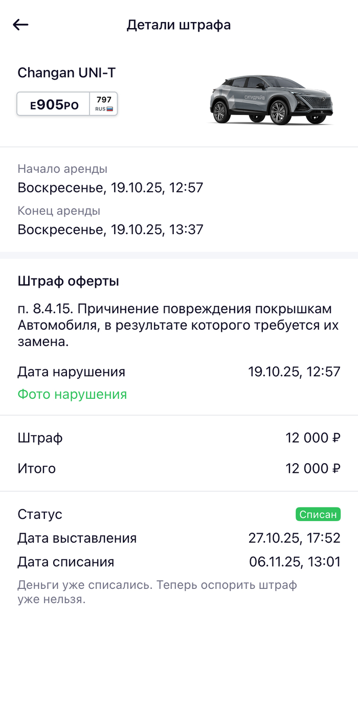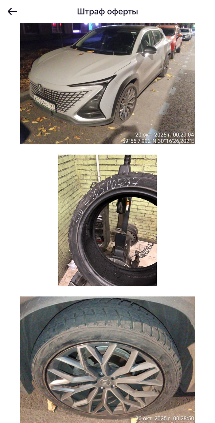 Через 8 дней мне был выставлен штраф за «повреждение покрышки».