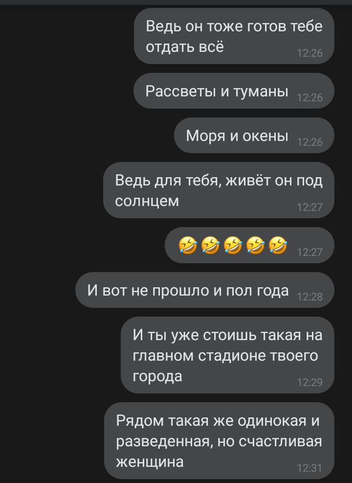 -Да ладно, я же вижу плачешь) Мне эта песня тоже нравится. Ты не переживай, мы с братом когда вырастем, сразу не уедем, с вами поживем.