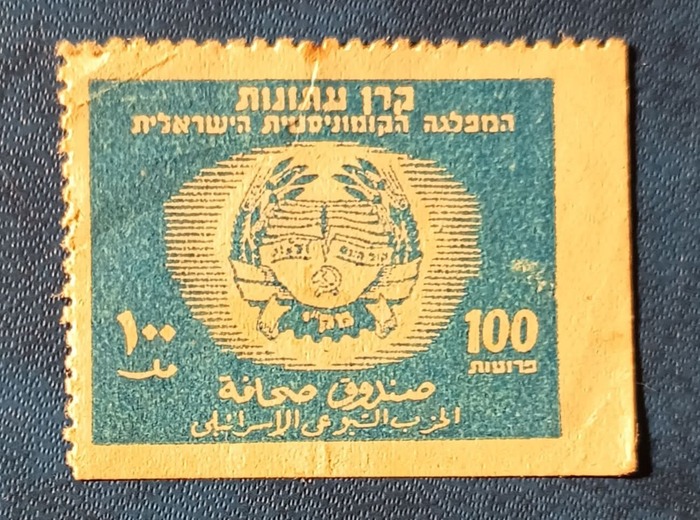 Марка, судя по всему, была выпущена в Израиле, возможно в первые годы после создания государства. На марке присутствует коммунистическая символика, насколько я знаю была (а может и есть до сих пор) Израильская коммунистическая партия.