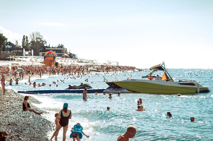 Семидесяти метровый фонтан в озере Абрау Дюрсо в Новороссийске
