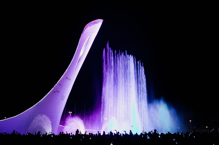 В поселке Абрау-Дюрсо в пригороде Новороссийска 17 октября 2015 года состоялось торжественное открытие огромного фонтана. Семидесятиметровая конструкция фонтана расположилась прямо в озере Абрау, в районе белоснежного амфитеатра на набережной. Canon 6D + Sigma 10-20, 20mm, 10 s, f/8