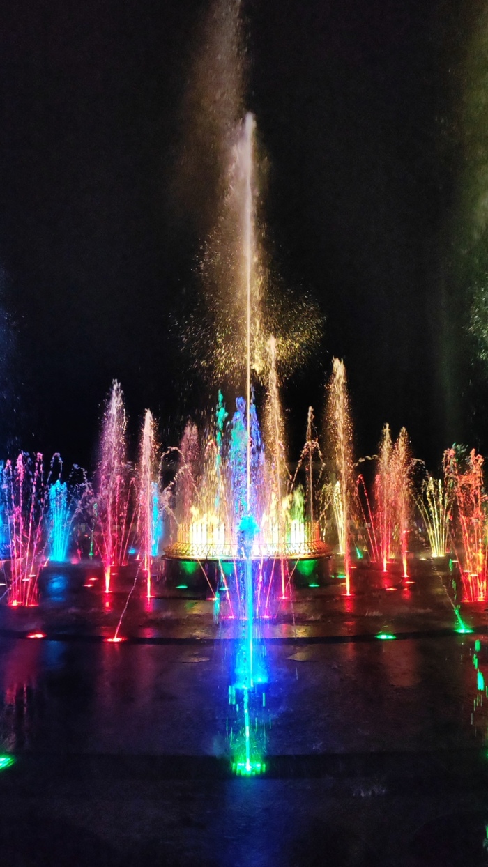 Строгая геометрия струй фонтанов и причудливая игра воды завораживают. И уходят куда-то в даль далёкую проблемы и дела. Остаются игра воды и света...