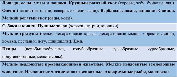 2. Виды животных – Закон четко определяет виды, которые могут быть допущены до физического контакта с посетителями зоопарков (зоосадов). В основном это домашний скот, собаки/кошки, мелкие грызуны и птицы и ряд других – полный перечень ниже.