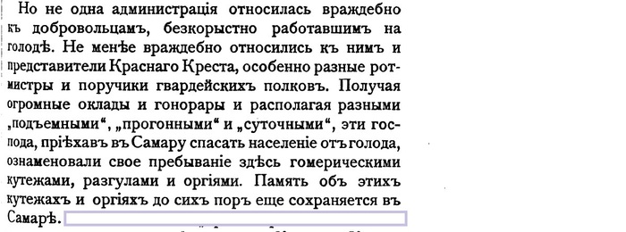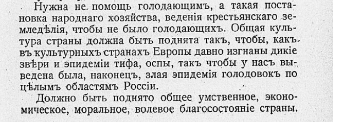 Эти аресты, ссылки, казни, эти реки горячей крови народа вырыли еще глубже пропасть между ним и партией насильников, всё это ещё выше приподняло революционное настроение. Голод в 22 губерниях тоже помогает росту ненависти к правительству.