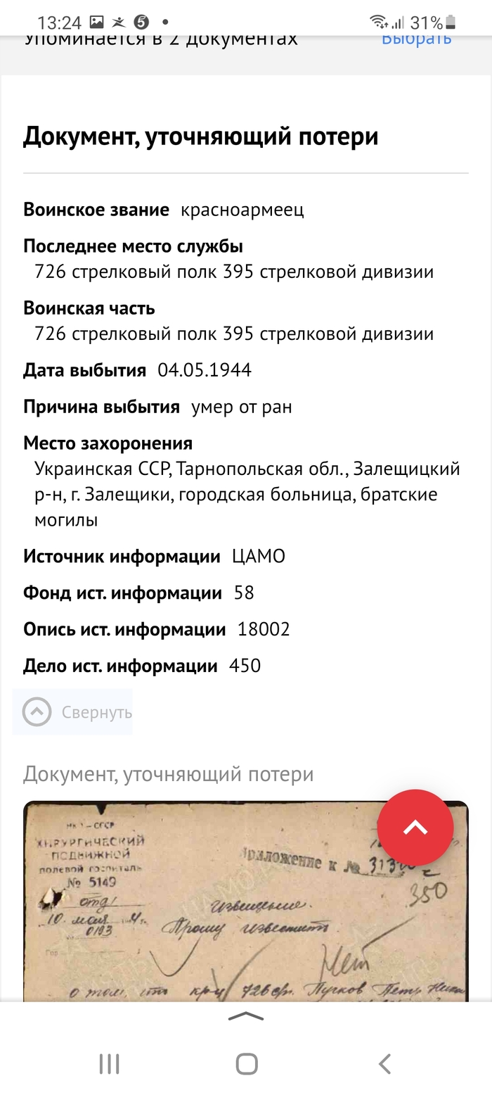 Добрый день всем. Может быть немного не в тему (все таки День Победы прошел), но наконец-то я нашел место захоронения своего прадеда, Петра Николаевича Пучкова.