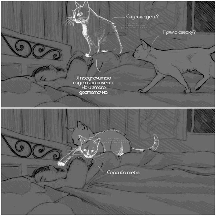 Каждое утро у них был ритуал. Хозяин брал пакет, И отправлялся на прогулку, за пакетиков для кота и хлебом для себя. Кот провожал его в прихожей, а затем запрыгивал на подоконник и ждал, когда хозяин выйдет из подъезда. Через некоторое время, хозяин появлялся и оглядывался. В окне сидел кот, хозяин махал ему, а кот в ответ положил переднюю лапу на окно, и ждал его возвращения, не забывая мявкать на птичек.