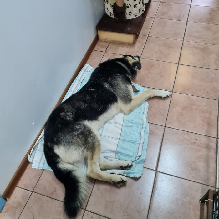 .Думали , что девочка, т.к.Балу🐕 начал посвистывать и похрюкивать, как он обычно разговаривает с собаками-девочками. Оказался молодой пес. Лежал на одном боку, задние ноги немного шевелятся, но двигаться не может.Пес домашний, с ошейником, и с карабином. При виде человека , радостно пошевеливает хвостом. Благодаря помощи Галины🌹, которая приехала на машине, куда без труда поместился пес, и помогала и с погрузкой и с выгрузкой пса ( есть женщины в русских селеньях - это про Галину), довезли песеля до "Лемура" @zoootel_lemur г.Воскресенск, М.о.