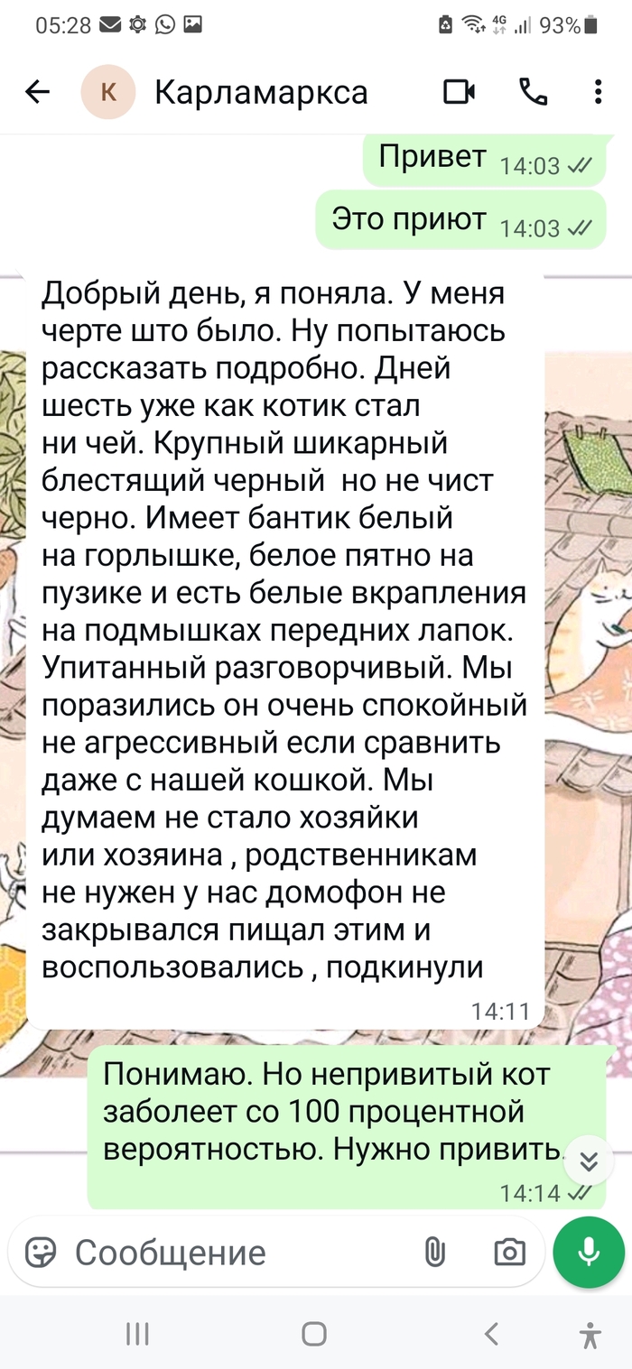 Мы сделали пост о коте, вдруг кто то его ищет. И получили такие сообщения