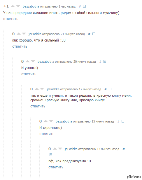 xumuk48 Логика и предсказуемость Пикабу 12 лет назад Пикабу настолько предсказуем, что я знаю - этот пост будет заминусован! [моё] Пикабу Предсказуемо