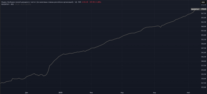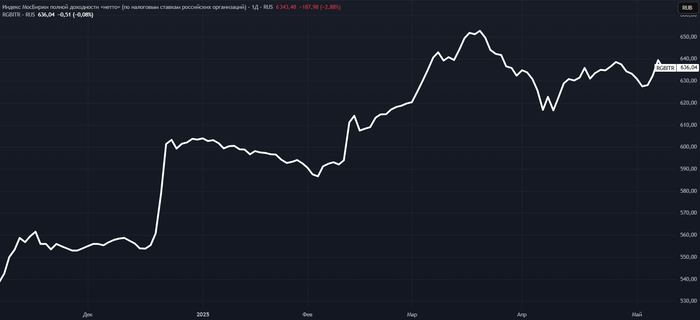 Индекс полной доходности государственных облигаций — RGBITR является ориентиром, показывающим доходность по этому типу активов. В расчет данного индекса входят, как короткие, так и длинные выпуски + учитываются выплачиваемые купоны.