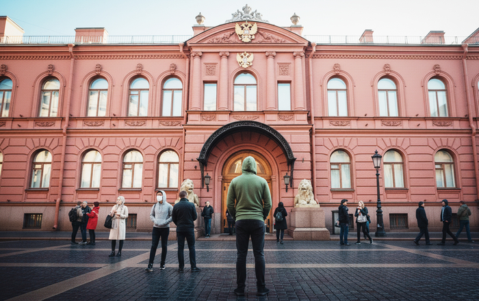 После пары проведённых дней в столице и адаптации, я купил билет на поезд до Санкт-Петербурга. Дорога прошла на удивление быстро и комфортно. Питер встретил меня моросящим дождём и слякотью, прямо как во время муссонов дома. Я нашёл главное здание МВД и пошёл на него посмотреть. Мне было жутко интересно, как у них всё организовано. Найдя на карте адрес главного управления, я первым делом пошёл разведать, с чем мне придётся иметь дело.