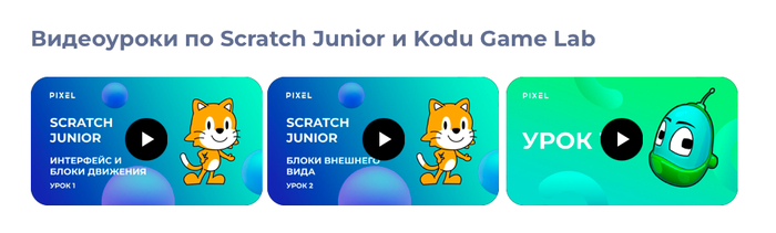 • Написании кода на Scratch Junior и в среде Kodu Game Lab. Возможны самостоятельные образовательные программы, а также сочетанный вариант параллельного преподавания. Это реализуемо благодаря общему моменту – визуально-блочному программированию;