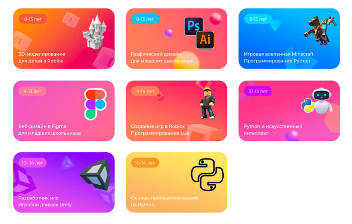 Дополнительно в рамках обозначенного возрастного периода можно освоить веб-дизайн, разработку на движке Roblox Studio и подобные, альтернативные направления вроде «сухого» Python.
