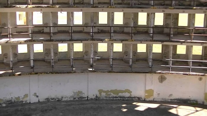 Заключённых туда выводили поочерёдно и схема была очень продуманной. Скамьи со столиками стояли концентрическими рядами, лицом к центру, где на башне стояли вооружённые охранники: