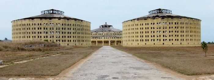 Особо опасные заключённые содержались в огромных цилиндрических зданиях, женщины - в более обычных, прямоугольных (справа). Когда же в тюрьму отправили группу революционеров после штурма казарм Монкада, их не рискнули поместить к другим заключённым и изолировали в больничном корпусе (одноэтажный, слева вдалеке).