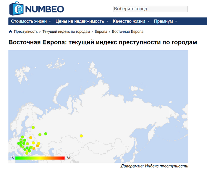 Вот сама карта и список с наиболее криминальными городами в Восточной Европе: