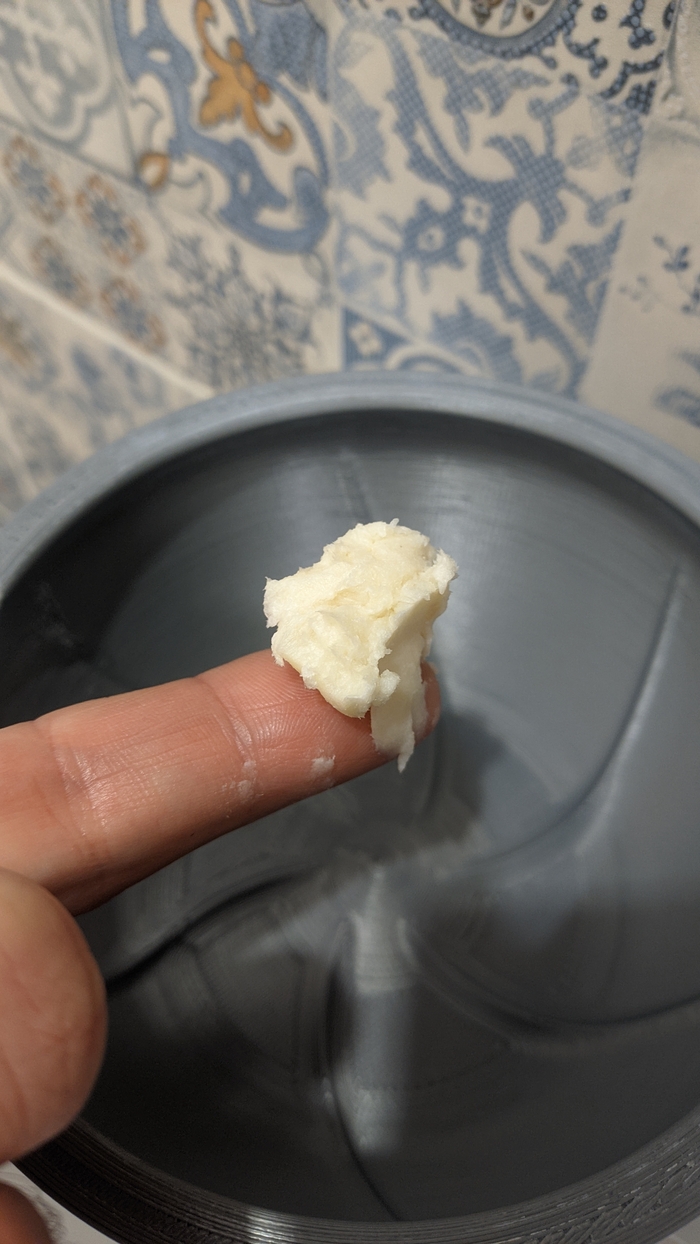 Думал будет аналогом Proraso, но нет. Тут консистенция как у не самого густого бальзама. Если ТДС с Proraso, то последний как будто именно впитывается в кожу, а ТДС оставляет на коже жирную пленку. Какой эффект лучше? Нанёс на на руки и смыл через 5 минут. ТДС смылся без какого-то эффекта. Proraso же сделал кожу немного мягче что ли. Т.е. лучше, когда именно впитывается. У обоих кремов есть в составе ментол (если мы говорим про зеленую и белую версии Proraso). Запах у ТДС в сторону "звездочки" и заметно слабее, чем у Proraso.