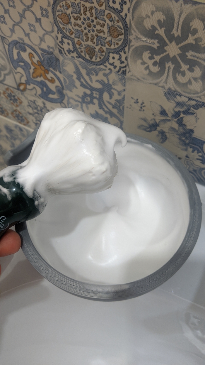 На годы про прешейвы, забил. Не так давно прикупил себе по скидке крем-прешейв от бренда ТДС. Думал будет что-то типа прешейва от Proraso, но дешевле. А ещё сразу купил и твёрдый прешейв от тех же ТДС. Решил сравнить что же лучше работает. Что лучше защищает кожу, что лучше размягчает волос. Одну половину лица оставлял как контрольную, а на второй половине прешейв использовал до распарки волоса, а во время следующей процедуры, уже использовал после распарки. Тестировал в качестве прешейва и обычный бритвенный крем, и даже баллонную пену. И какой-то существенной разницы я не увидел😑