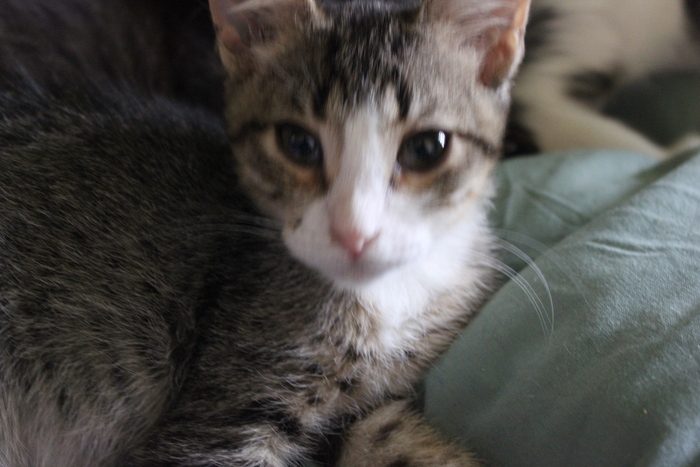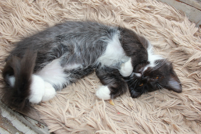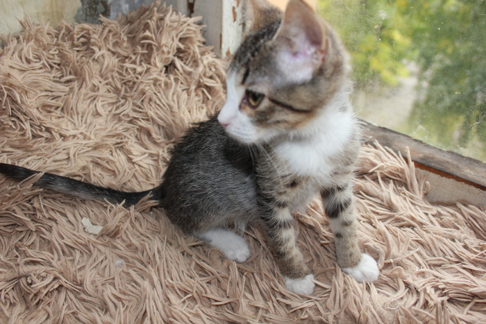 Неделю назад проезжали деревню, в области, остановились у продуктового магазина и в машину забрался продрогший котенок. Узнали у продавщиц чей, оказалось, что пару дней назад кто-то подбросил. Выставить было выше моих сил, а потому поехала с нами, всю дорогу спала в старой куртке. Купание перенесла хорошо.
