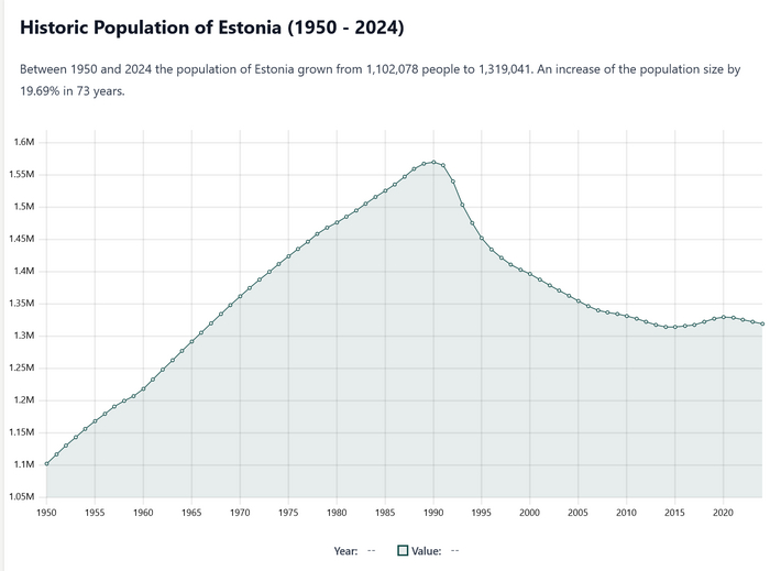 Статистические данные по странам Балтии, сформировавшие мой субъективный взгляд на проблему. В некоторых странах уровень населения сократился до послевоенного значения (ВОВ). После войны десятиполосные скоростные автомобильные дороги не были приоритетной задачей. Нужно было строить заборы, восстанавливать производства, повышать уровень жизни растущего населения.