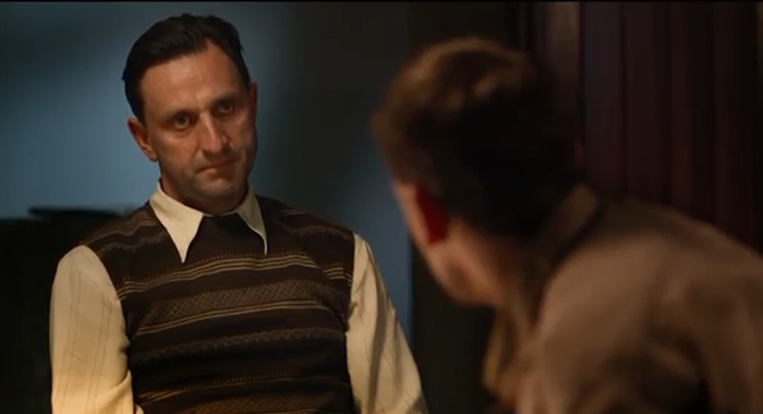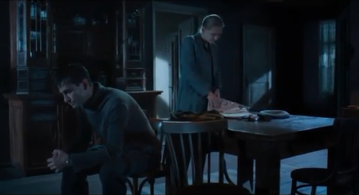 Папаша Лаймы держит ребенка на руках, ну а сама дочка отсутствует. Дальше Макс садится выпивать, а угольщик начинает рассказывать, почему он ненавидит евреев. Оказывается тут виноваты еще и русские, которые вероломно на Литву напали перед самой войной, а евреи сразу к ним переметнулись и стали прислуживать ненавистным Москолям. Да, слово Москали в фильме произносится, причем не единожды, от чего складывается впечатление, как будто эту картину снимали украинские или прибалтийские националисты, которые ненавидят русских.