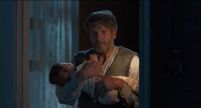 И в его отсутствие, к нему на квартиру заявился угольщик, а именно отец Лаймы, который вроде как был убит в перестрелки, нам даже показали его труп, но он оказывается выжил. Он просит чтобы дочь, пустила его переночевать, а потом он снова в лес отправится. Дочка которая отца вроде как ненавидит, его не выгоняет.