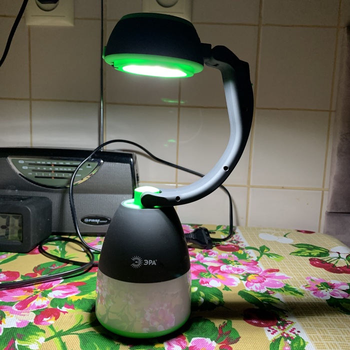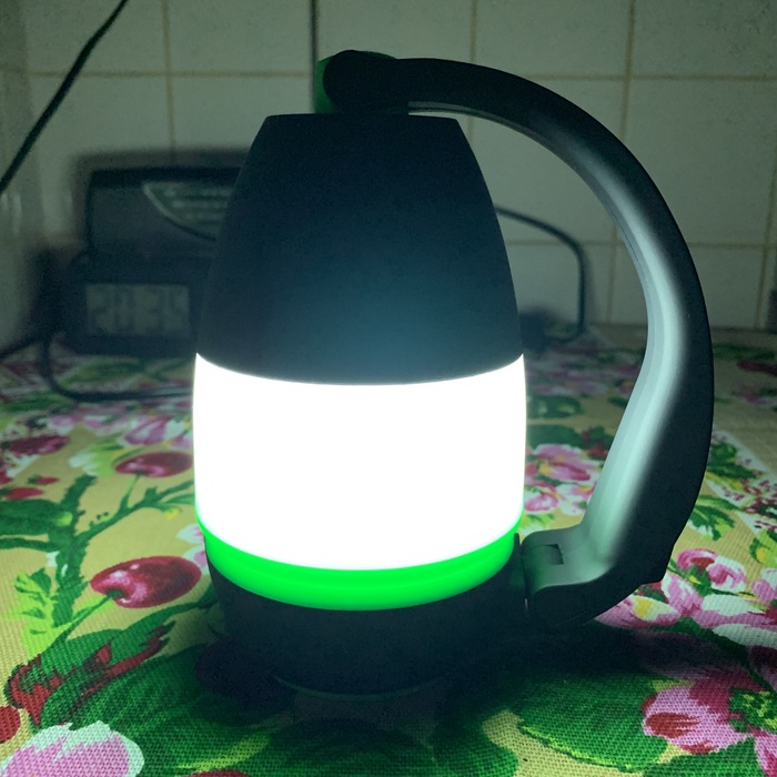 Так называемый кемпинговый светильник включается на два уровня освещения, собственно они же эти два уровня и в режиме настольной лампы работают, но по порядку.