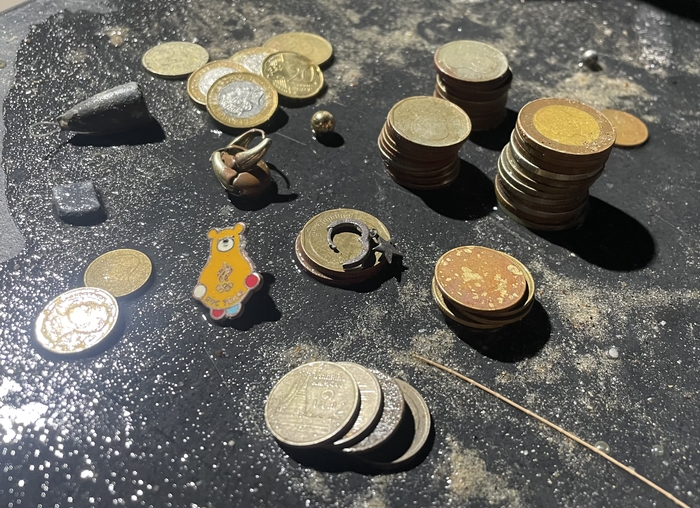 Ко мне местные копари отнеслись очень добродушно и, узнав, что у меня не подводный МД предложили разделиться: они ползают в воде и по полосе прибоя, а я по песку, где сухо. Так же показали и свой нехитрый Хабарок за вечер: пригоршни монет, коих здесь по пляжам море, и бижутерные украшения. Бить и домогаться расспросами они тактично не стали, обменявшись несколькими фразами на ломаном английском, мы разошлись: они полезли в воду, я наверх пляжа к местам, где тюленят отдыхающие.