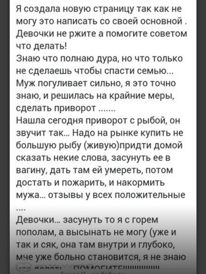 П.с. если пост найдёт отклик, то следующий напишу про : " на вас порча и на вашей семье, и на соседях,и на рыбках"