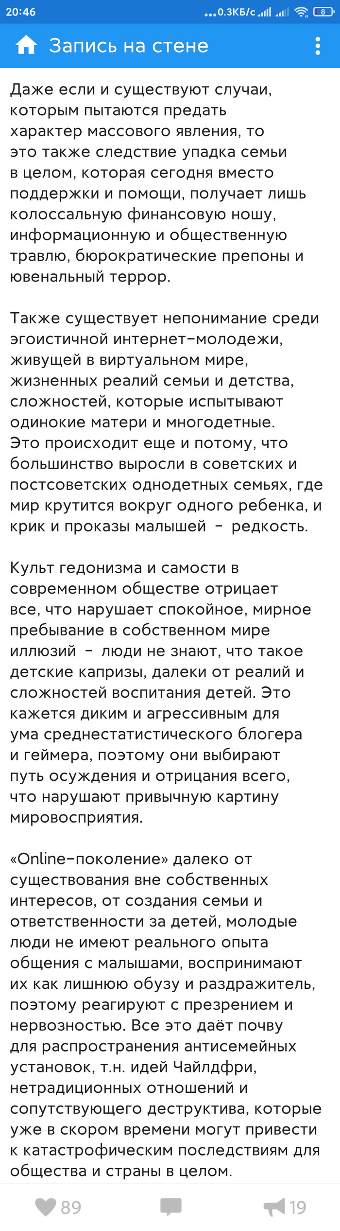 Машина проехала мимо, девочка в итоге, поняв, что никто ее юной натуре уступать не собирается, с растерянным взглядом свернула и объехала меня, когда машина уже проехала мимо нас, - девочке все же это было проще сделать, чем мне.В принципе, рядовая ситуация, ничего особо примечательного и экстремального и через секунду я бы уже забыл про это, но впереди шла мамаша с каким-то мужчиной. И, когда я проезжал мимо них, она возьми и ляпни мне с такой презрительной ноткой в голосе: "Вот взяли бы и объехали моего ребенка. Она - девочка, а ты - здоровый мужик!".