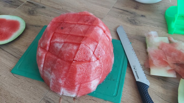 Это удобный способ для больших компаний и очень хорошо подходит детям, которые половину мякоти оставляют на кожуре.