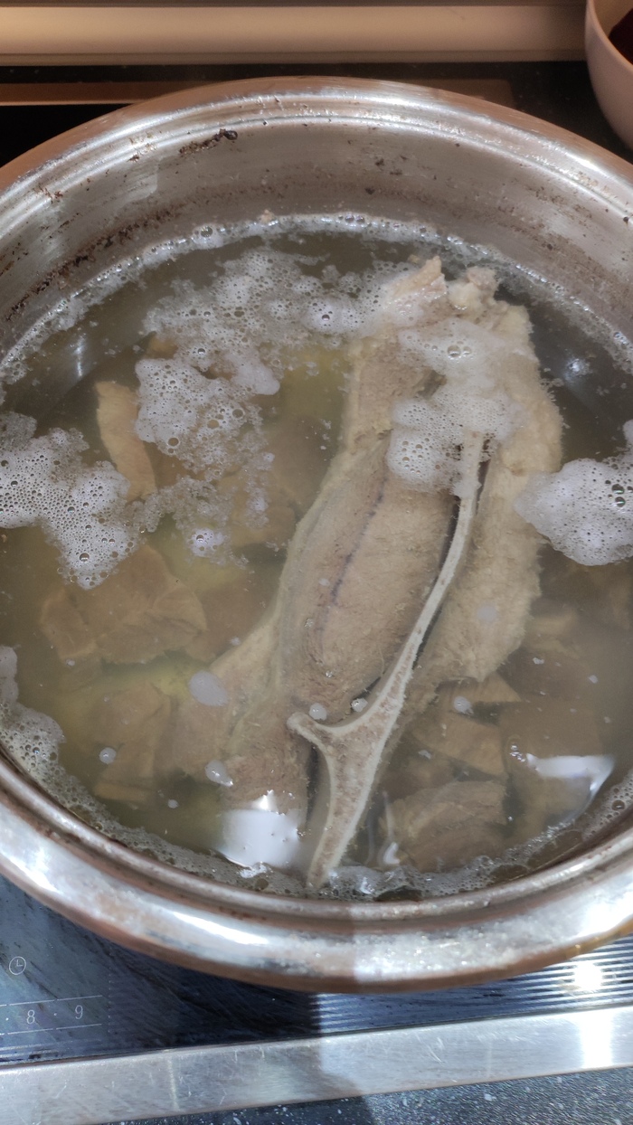 6) достал ребра и поставил остывать в холодной воде