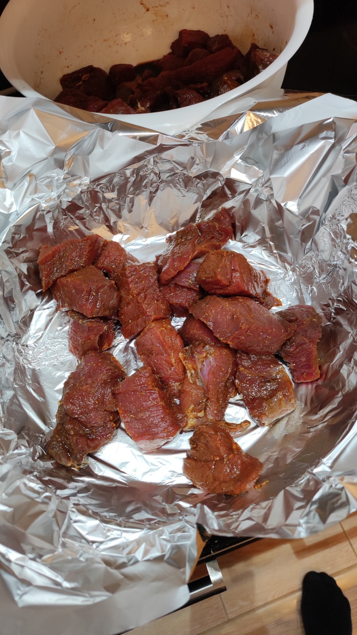 Сегодня вечером "делаю" мясо тушёное с картофелем и луком... Почему "делаю", а не готовлю!?! Потому, что "набегут критики"... Напишут, что это не готовка))) но мне на них пофиг))) мясо - полуфабрикат замаринованная свинина "Буженина по-охотничьи".